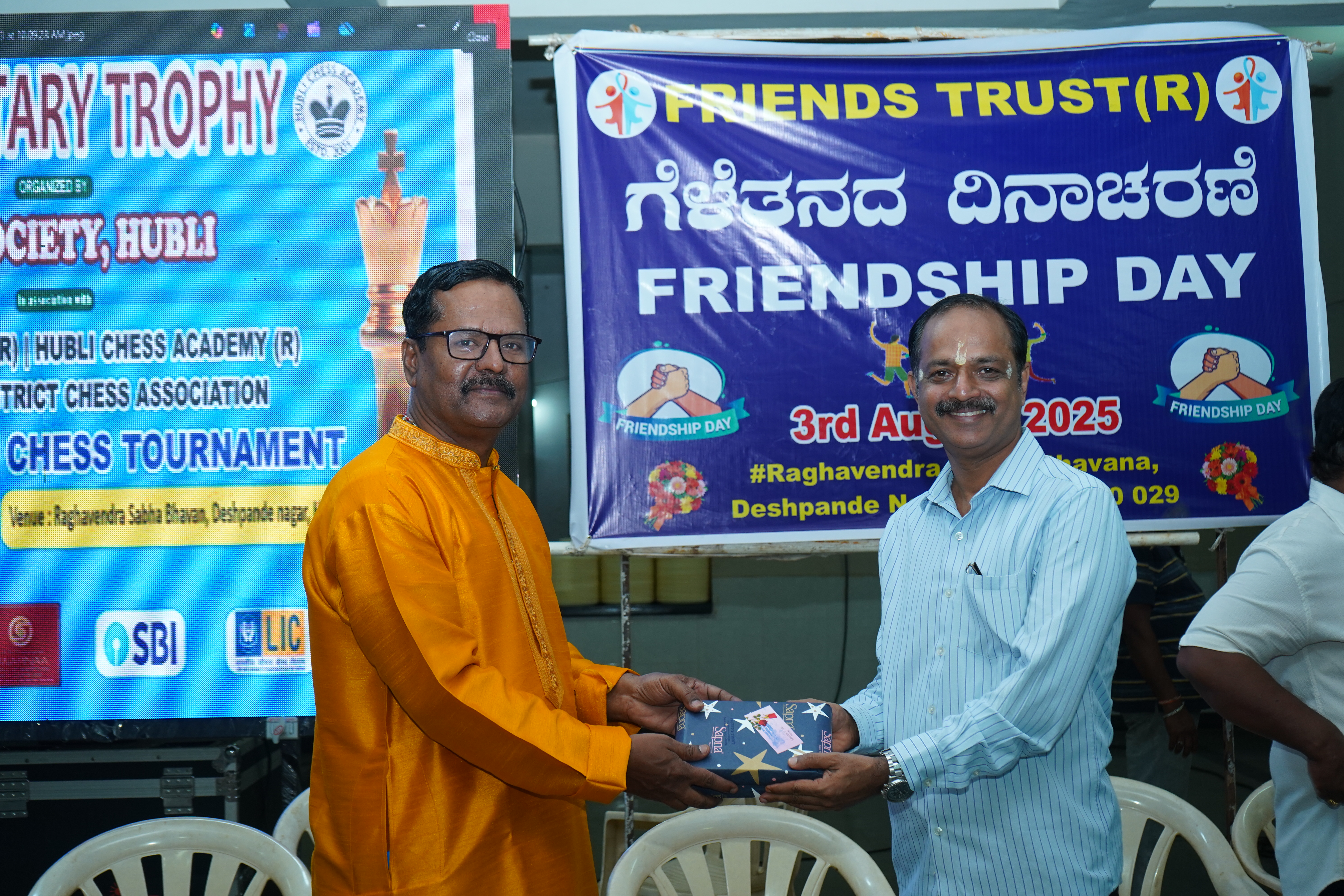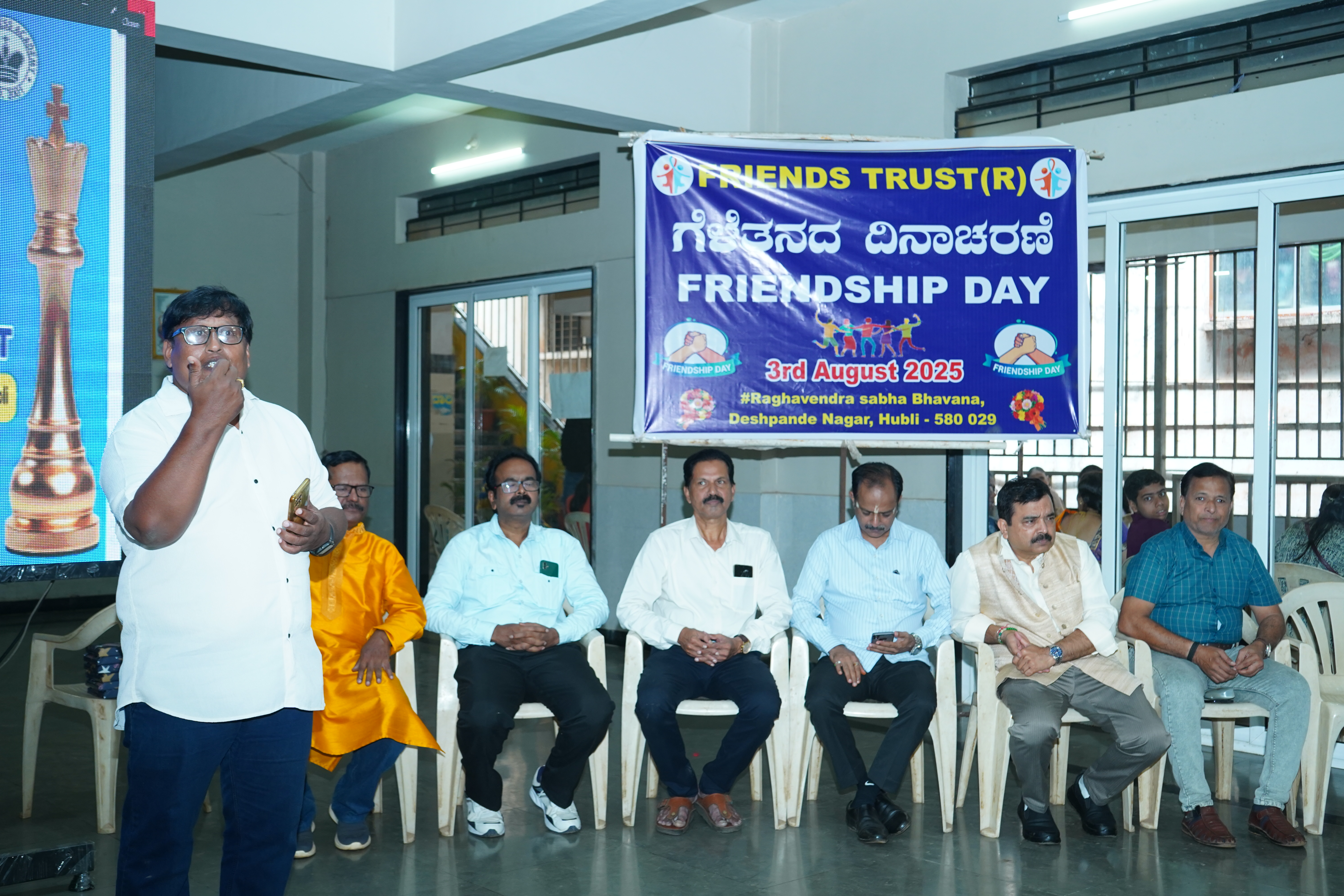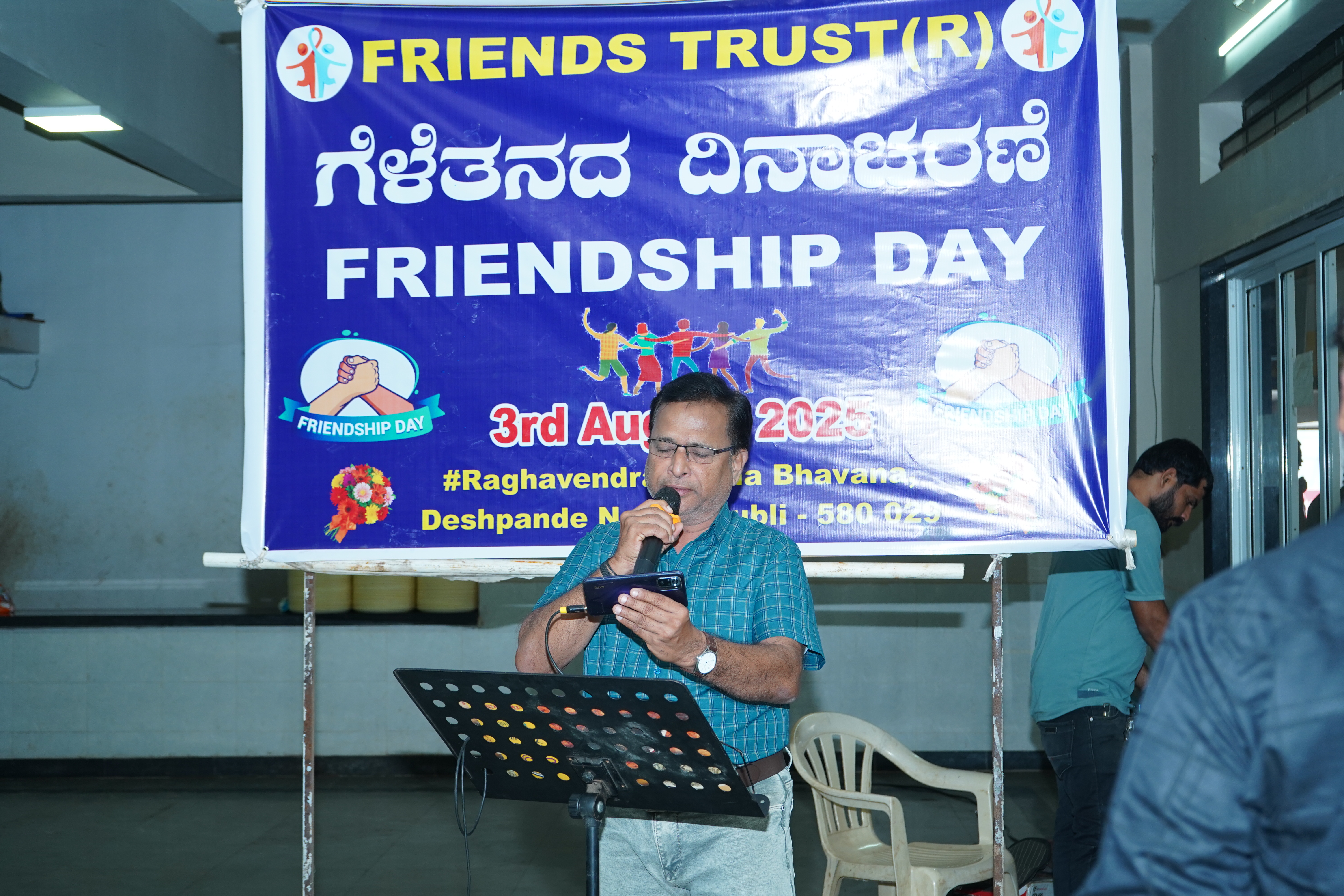 Enjoyed Friendship Day by greeting, singing and participating. Inaugurated by Sri. SADANAND KAMAT, Owner of KAMAT Group of Hotels. Sri. MURALI MORAPPANAVAR, Industrialist. Sri. PRAKASH NAIK, Rtd. EPFO Officer. Sri. O. NAGARAJ, Senior Karoke Singer. Sri. VEERESH HANDIGI. Senior Press Person.